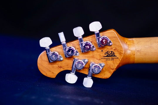 | Bridge | Standard - Music Man® strings-thru-the-body bridge of chrome plated, hardened steel with solid steel saddles; Optional - Music Man® vintage tremolo |
