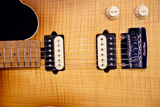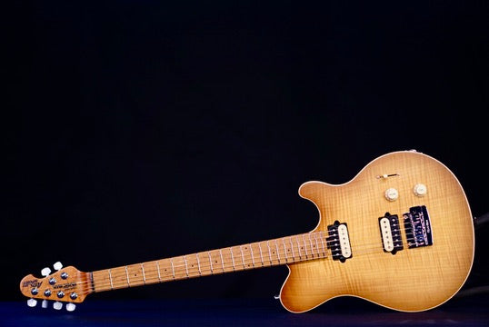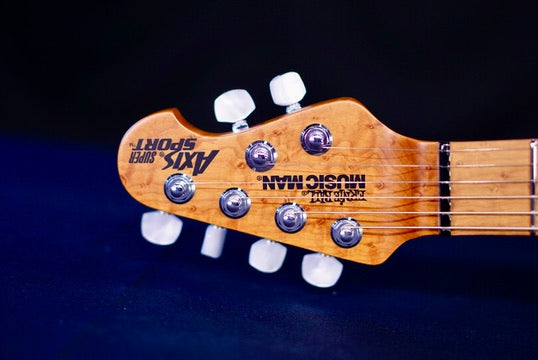 The Axis Super Sport guitar is offered with a roasted, figured maple neck, 22 stainless steel frets, in four exciting new finishes: Honey Pot, Matcha Green, Charcoal Cloud, and Olallieberry. The Super Sport retains all the classic features, including the ever-comfortable asymmetric neck shape, proprietary Ernie Ball Music Man vintage tremolo with locking Schaller tuners, 5-way switch, volume/tone controls, and custom DiMarzio humbuckers. Available with your choice of flame or quilt maple top over a basswood body, this tonewood/pickup combination is a perfect recipe for hard-edge rock tones but also delivers a subtle dynamic response at lower volume levels when needed.