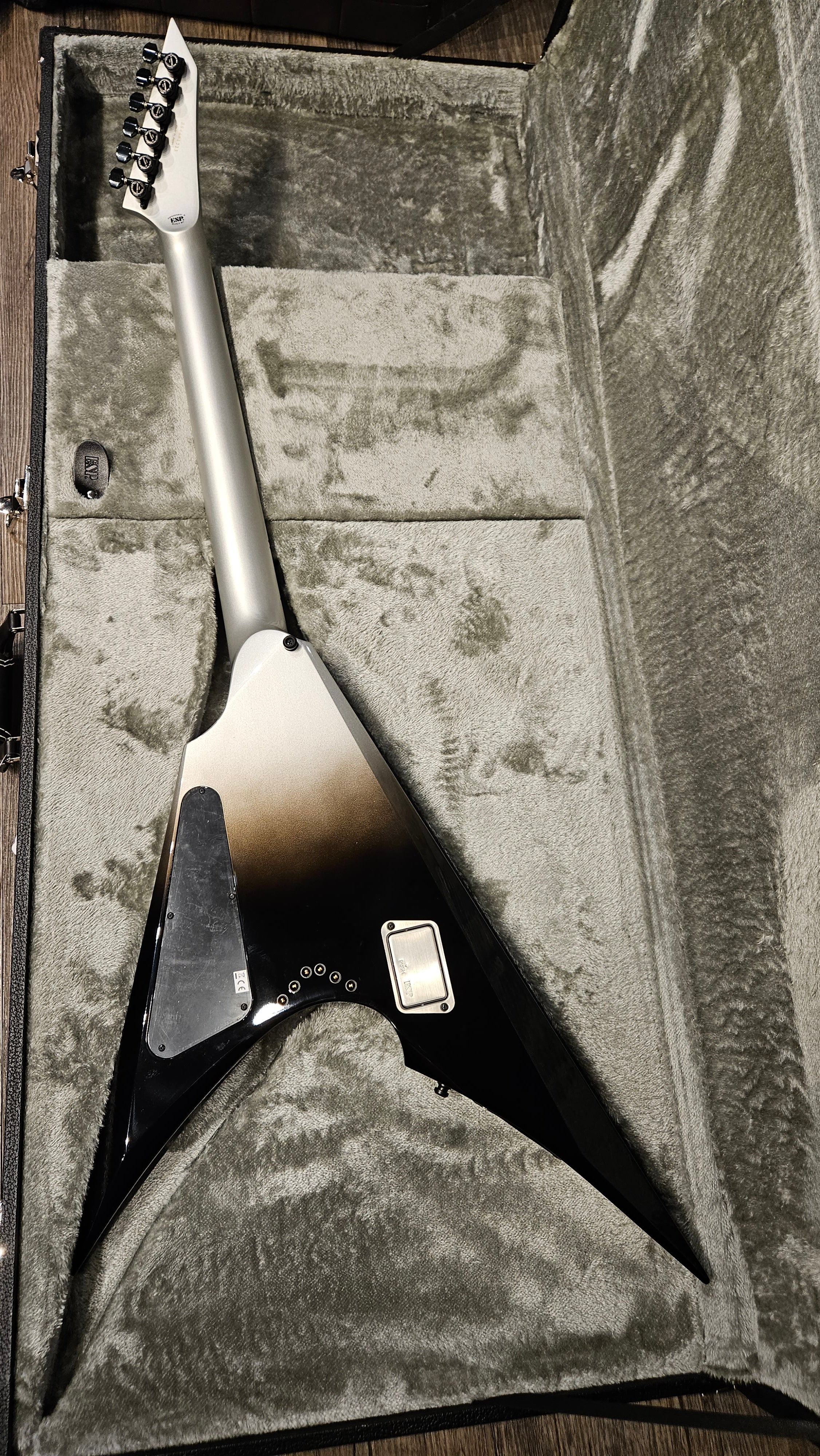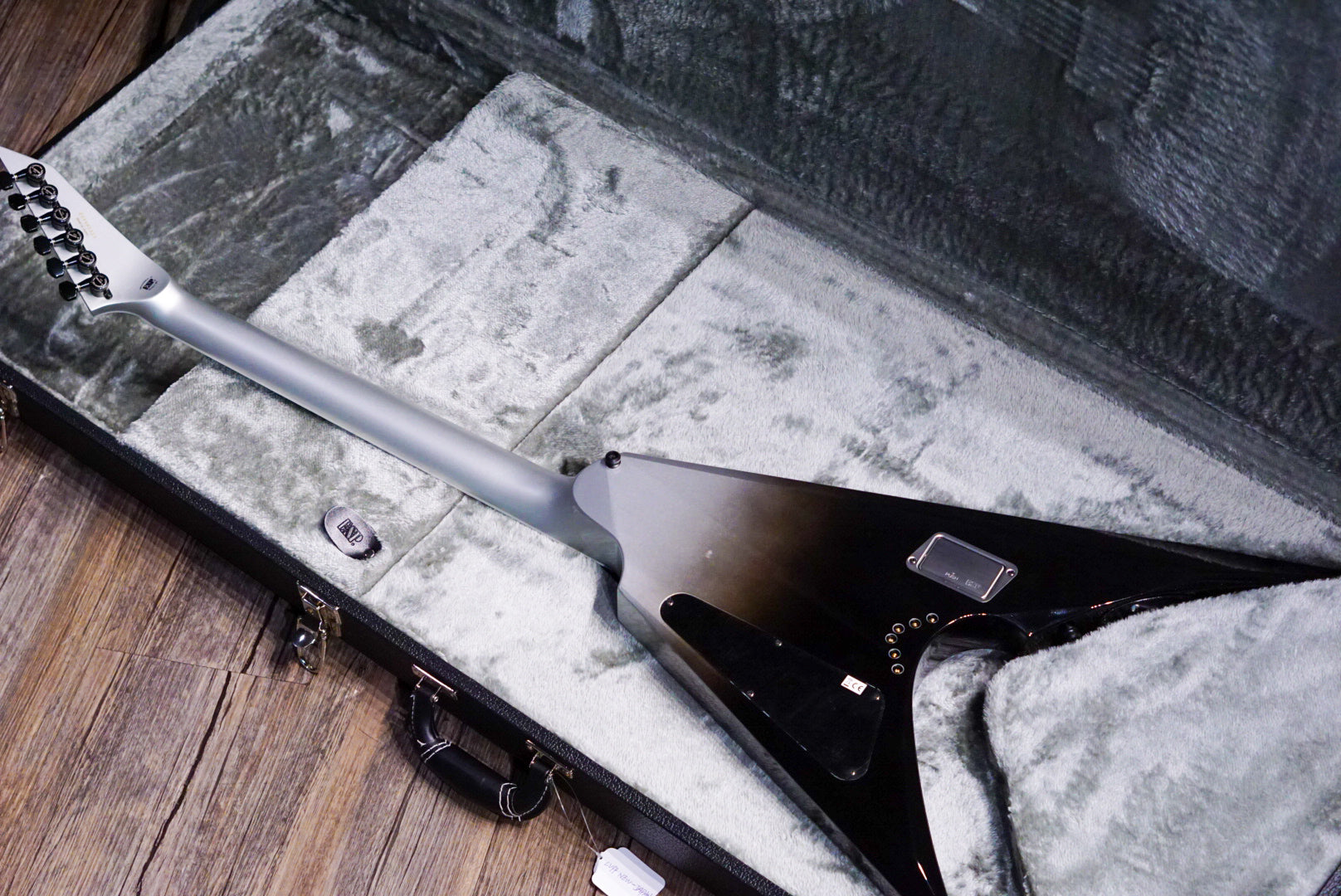 Completely unique in its bold design, the ESP E-II Arrow is a guitar designed for pure high performance that will stand out from the crowd. Like all ESP E-II models, the Arrow is made in Japan at our ESP factory. Offering neck-thru-body construction, the E-II Arrow offers a sound as powerful and aggressive as its looks, with a set of EMG 85 (neck) and EMG 81 (bridge) active pickups. It has a light alder body with a 3-piece thin U-shaped maple neck, and an ebony fingerboard with 24 extra-jumbo frets. High-quality components on the E-II Arrow include ESP strap locks, Gotoh locking tuners, and a Floyd Rose Original bridge. Available in Black as well as new Snow White and Silver Fade finishes, as well as a non-tremolo version. Includes ESP hardshell case.