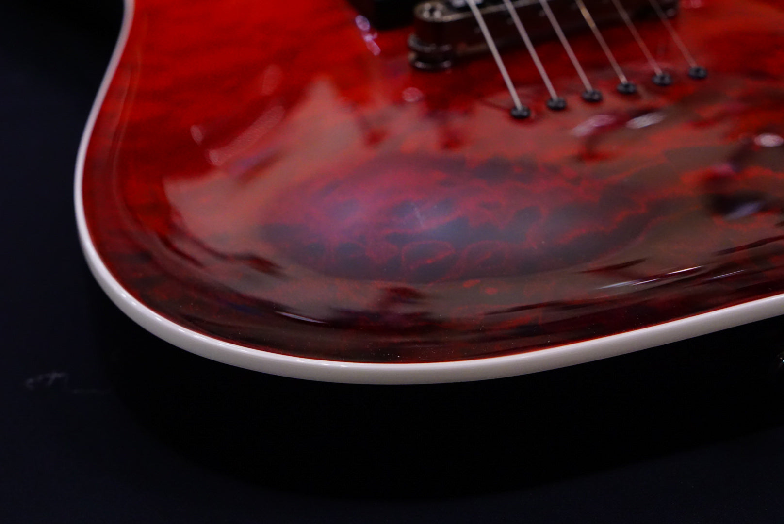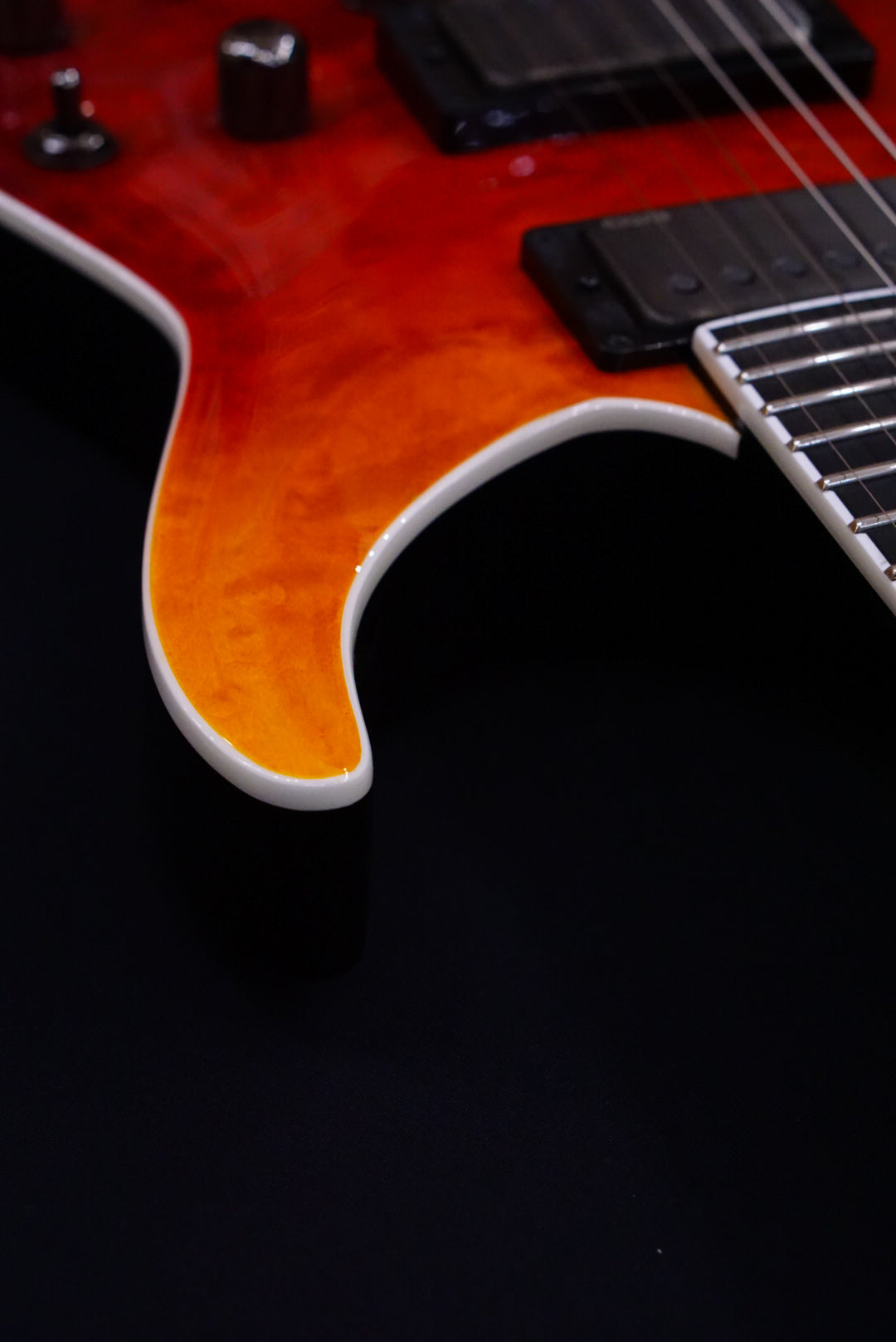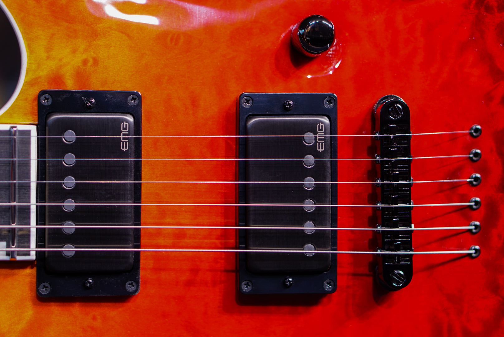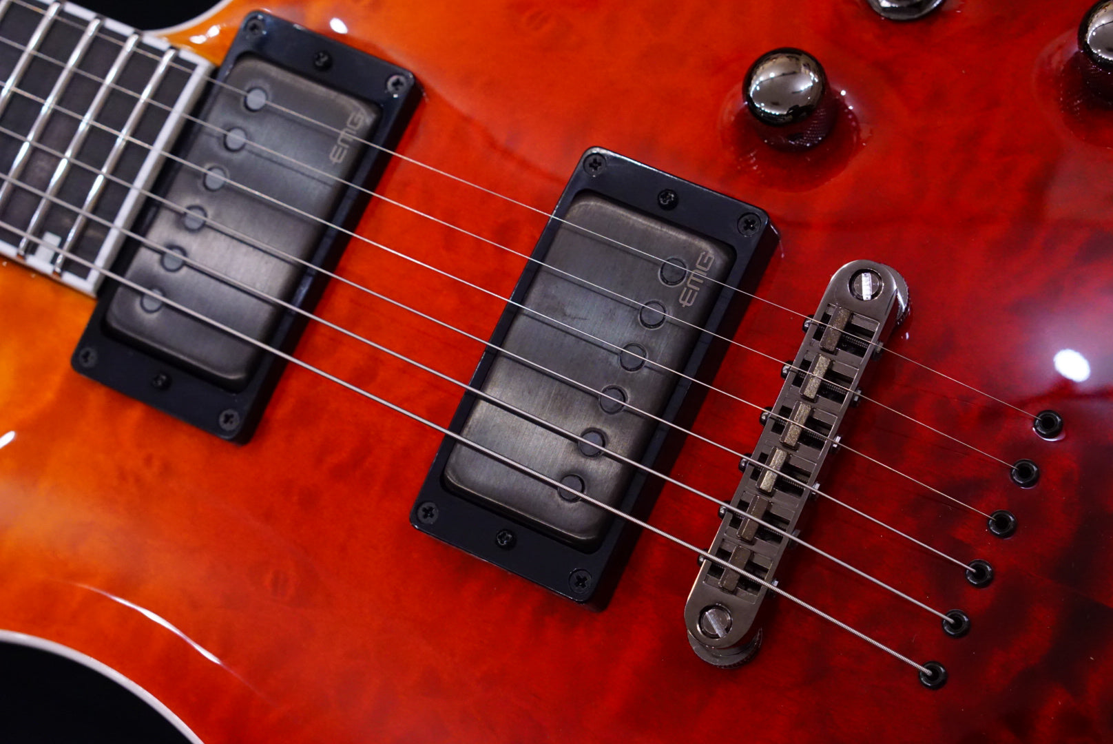 The ESP E-II Horizon NT-II is a sustain-lover's dream, with neck-thru-body construction as well as a Gotoh TOM bridge with string-thru-body design. Built in Japan and available with a stunning Tiger Eye Amber Fade finish over its figured quilted maple top, the E-II Horizon NT-II offers a 3-piece maple neck and a mahogany body, an ebony fingerboard, and 24 extra-jumbo frets. Ready for everything from super tight rhythms to fluid leads, this guitar includes high-end components like a bone nut, ESP strap locks, and Gotoh locking tuners. The sound of the E-II Horizon NT-II comes from a set of outstanding active pickups, with EMG 66TW (neck) and EMG 57TW (bridge) in brushed chrome that offer discrete coil-splitting controls for each pickup. Includes ESP hardshell case.