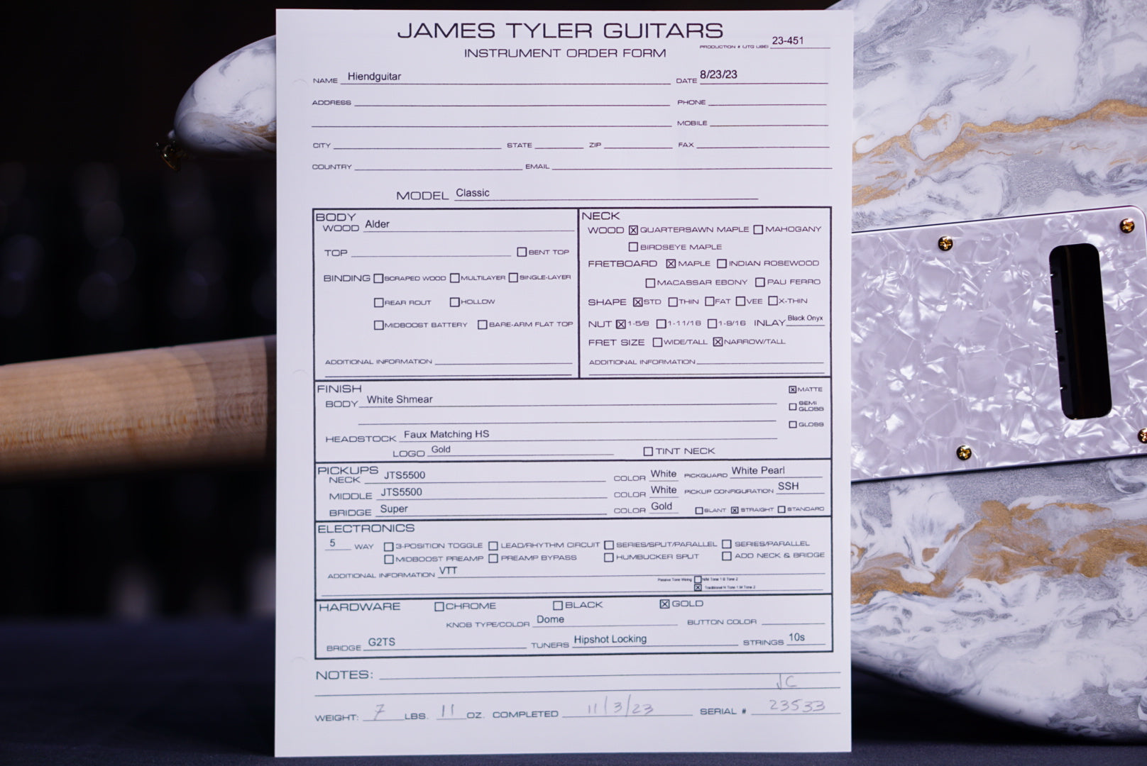 James Tyler Classic White Shmear maple fretboard 23533