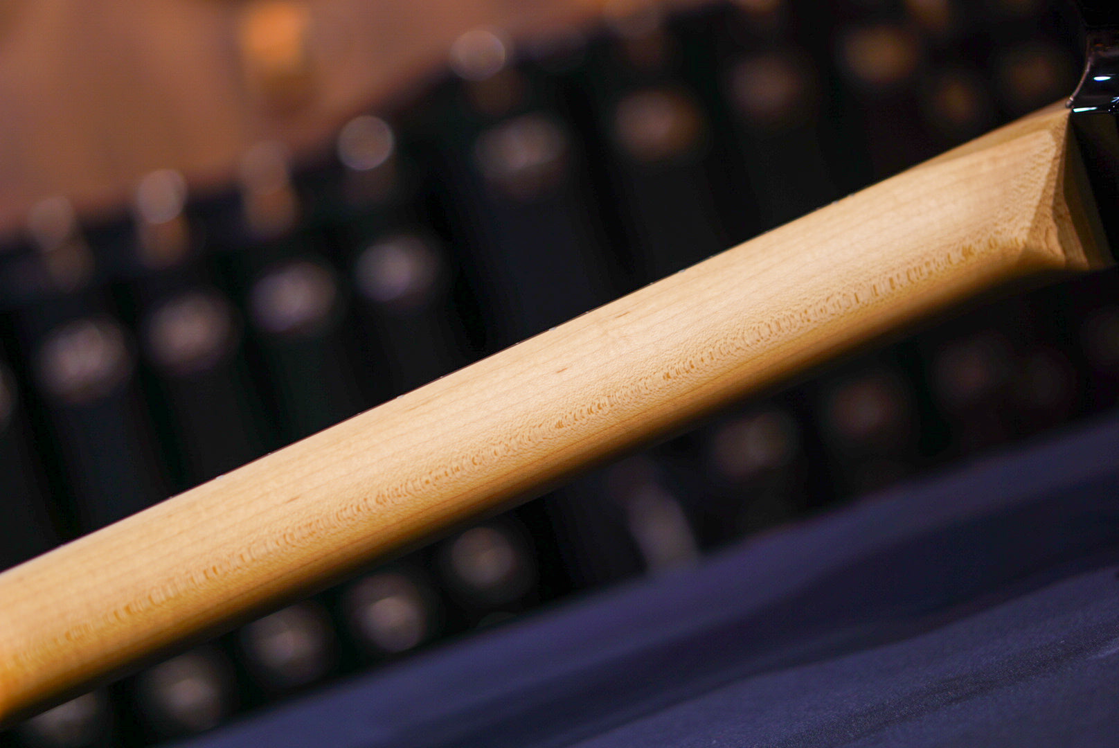 There are a few differences between this and Dann's '64 that are just better. It has 22 frets. It has a recessed Floyd. It has a battery box. And most importantly, it has a Tyler Headstock with Jim's California Signature logo and Dann's Signature Logo on back."