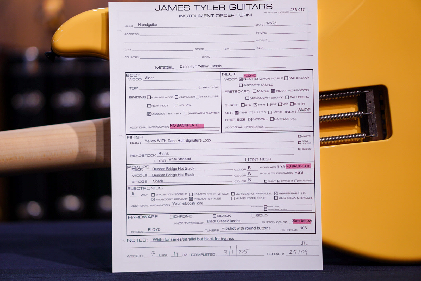 The relationship between Dann Huff and James Tyler goes back to the 80s. You may know a similar guitar as the Black Classic Level 3 but now you have the Dann Huff Yellow Classic spec’d for Dann Huff himself!