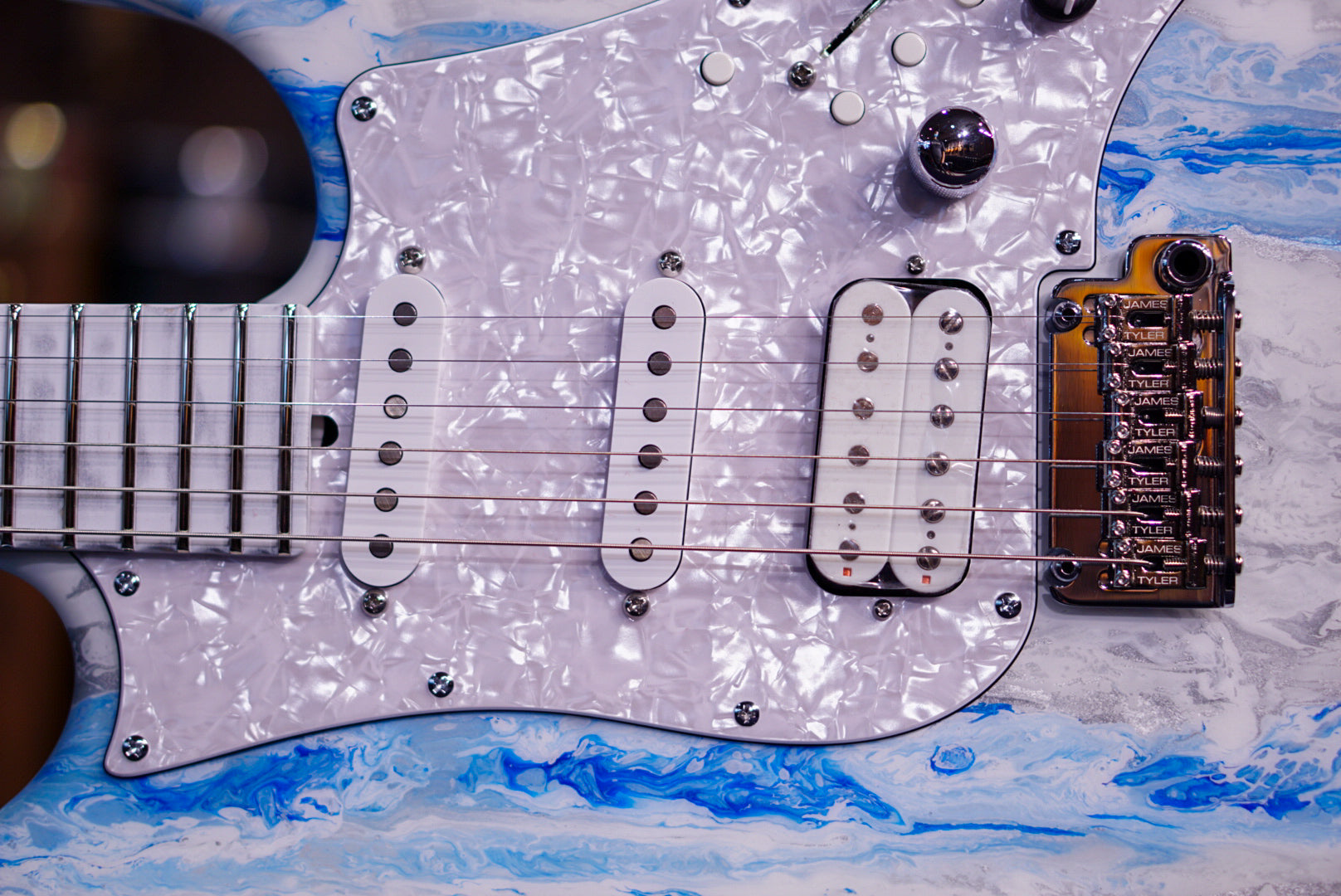 On 2024 NAMM, James Tyler Guitars announced the Studio Elite 1987. The design was a idea of Sarah Tyler (James Tyler’s Daughter) to celebrate the 35th anniversary of the Studio Elite. The official birth year for the Studio Elite with Jim’s headstock design was 1987. It was also the year that Jim went full time building only and no more mods and repairs. So in 2022 it was 35 years old. So to celebrate, everything on the guitar is California and the sounds are a throwback to those early Tylers which were all Mamywo (Jelutong) and had lead/rhythm circuits in them with midboost preamps. Also, to keep it as modern as possible too, we are using Stingray 500 with the new cancelling coil circuit.