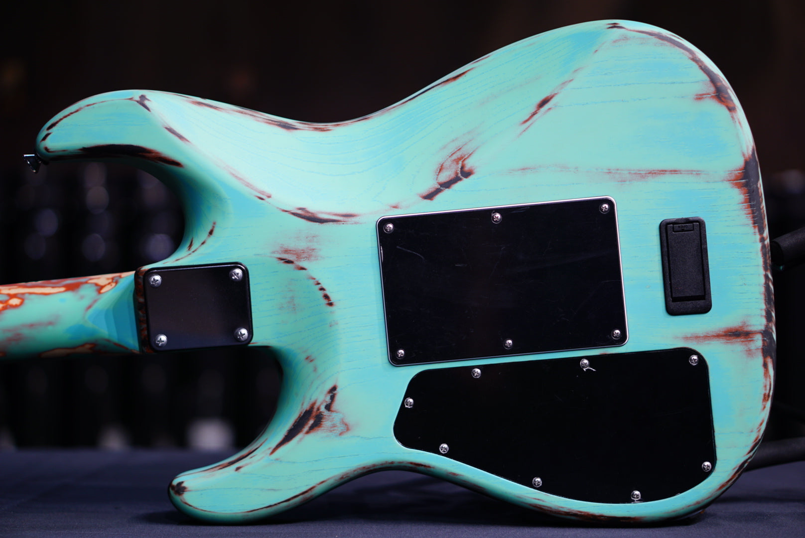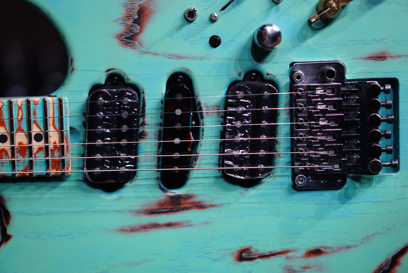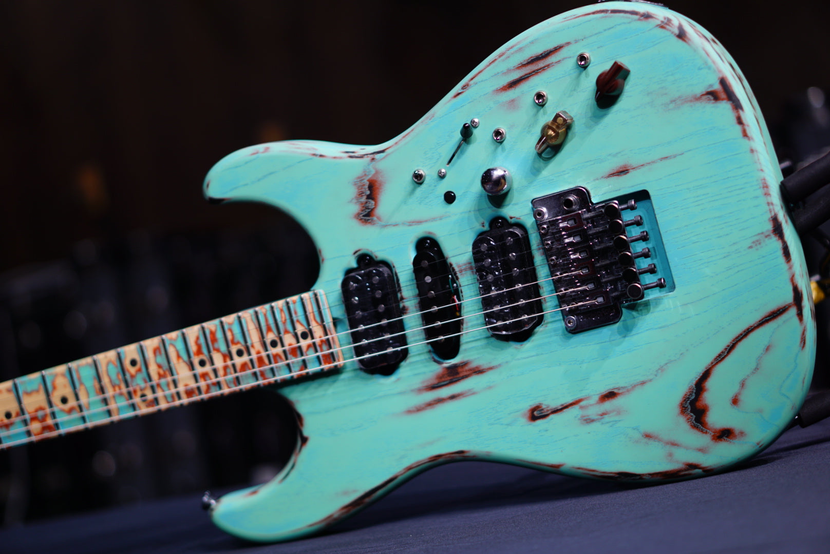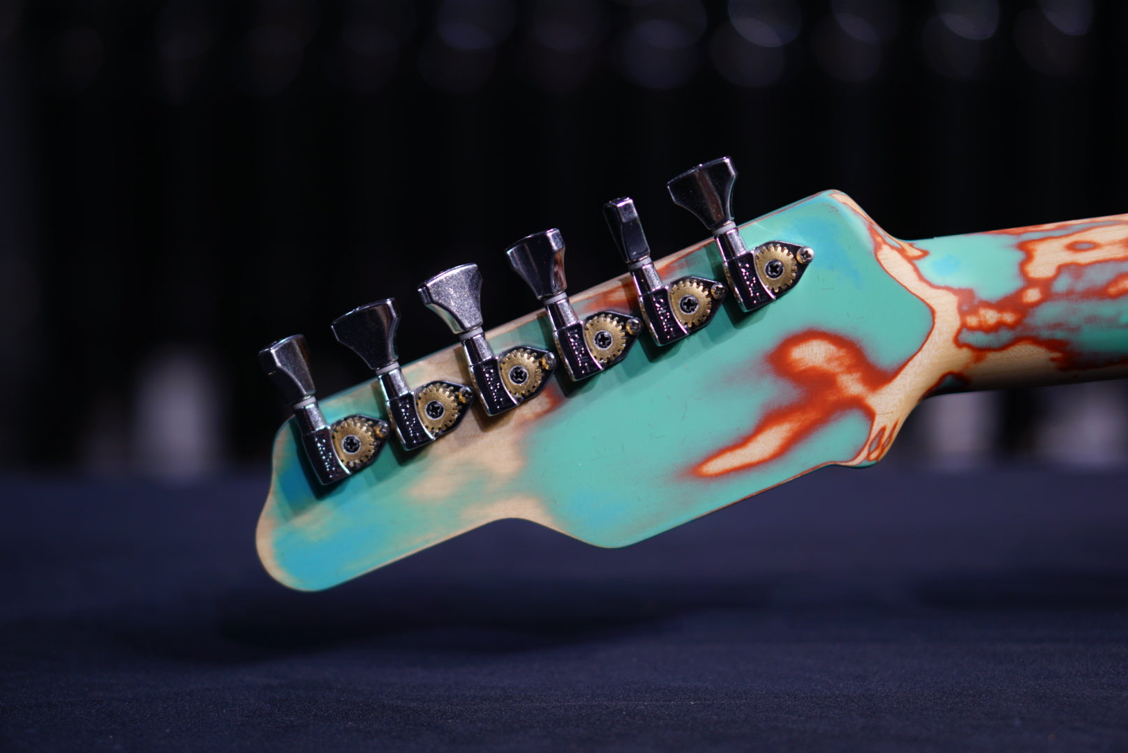 Studio Elite - standard shape Quartersawn Maple neck and fretboard, 1 5/8" nut, wide/tall frets, Hipshot tuners, rear rout with black slant Retro neck, Duncan Classic Stack and Shark bridge humbucker, master volume - lead/rhythm circuit - midboost preamp with bypass button, chrome hardware and dome knobs