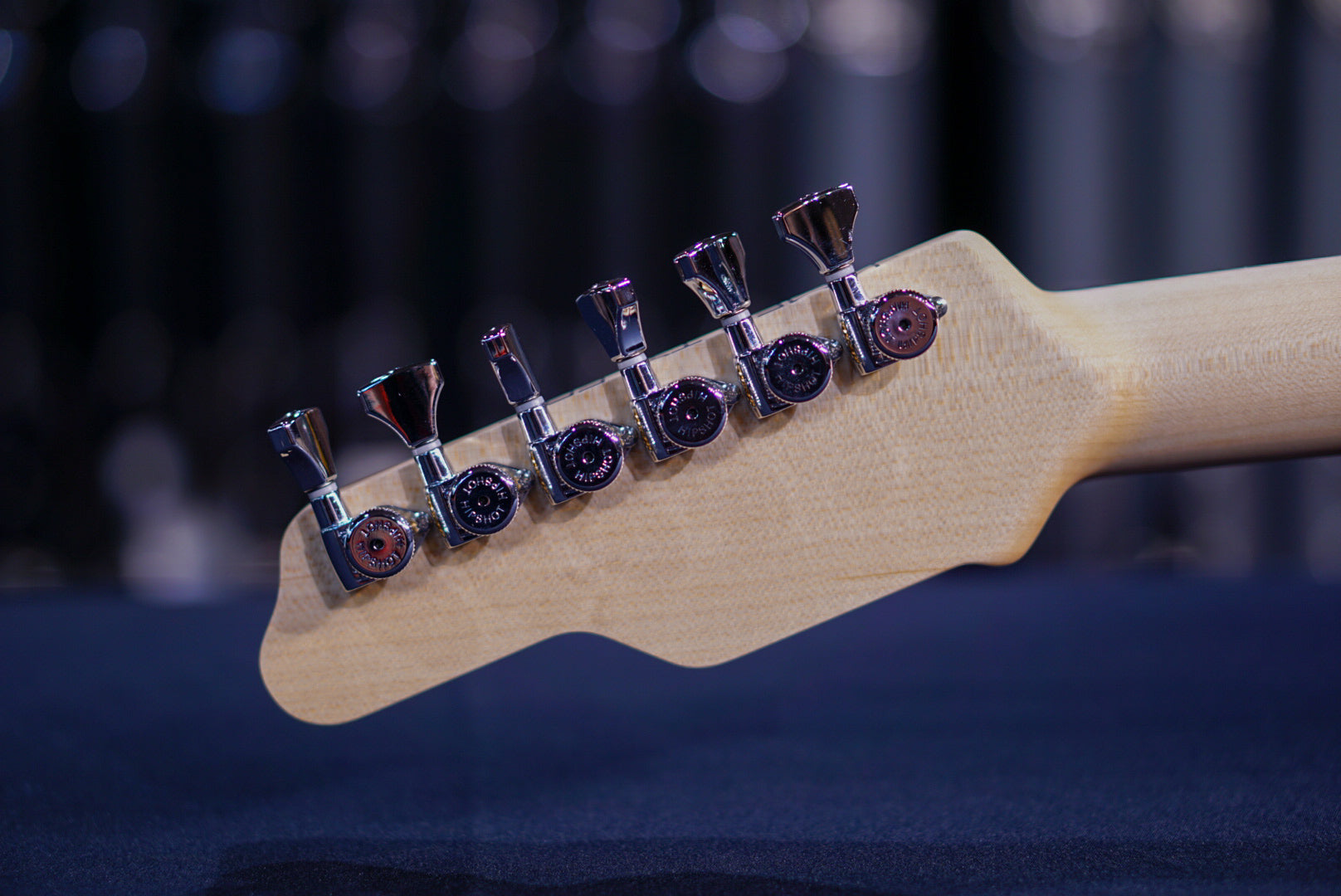 Studio Elite HD - Alder solid body, standard shape Quartersawn Maple neck and Rosewood fretboard, 1 5/8" nut, wide/tall frets, Hipshot locking tuners, b/w/b pickguard with straight JTS5500 single coils and Secret humbucker, master volume - midboost preamp with bypass button - master tone, G2TS bridge, chrome hardware and classic black knobs