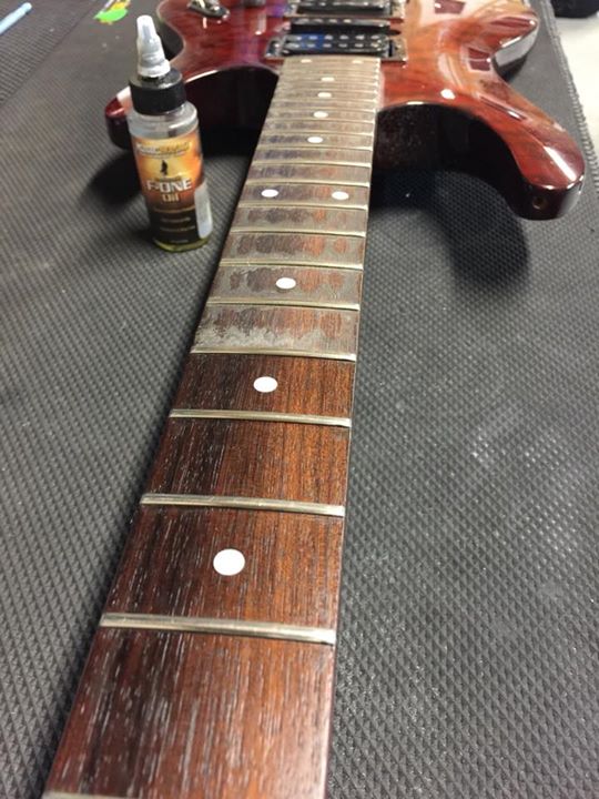 F-ONE gives wood its life back. F-ONE is formulated using a complex mixture of the finest ultra refined tree and seed oils to clean, condition & protect your fretboard/fingerboard. 100% free of any lemon oil extracts, waxes, petroleum distillates, silicone, and water. We chose not to use any lemon oil because it contains d-limonene, which is a strong solvent that is used to remove paint and glue. In addition, we believe the high acidity levels of lemon oil can dry out the fretboard over time and require more frequent fretboard care. F-ONE leaves your fretboard looking new, playing great and feeling smooth, never sticky or tacky. Our revolutionary formula penetrates & conditions the wood to dry fast and give it a new look for months. We use 100% naturally produced oils and is safe on all unfinished rosewood, ebony and maple fretboards. F-ONE oil is preferred by some of the most respected repair shops in the world.