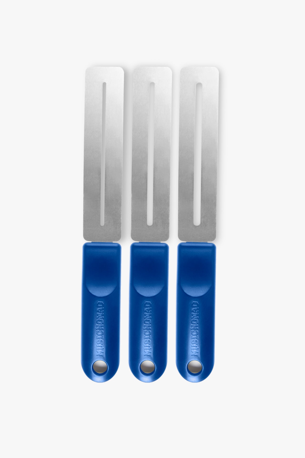 Polishing frets and other fret work just got a whole lot easier with Music Nomad's patent pending GRIP Guards. The premium fretboard guards are made using a high precision process that produces a very smooth finish on our high quality stainless steel material, which is nonmagnetic, corrosion resistant and heat resistant. The special engineered curved angle contours to all fretboards. The innovative ergonomic handle makes any fret job easier, quicker, and keeps your fingers from getting in the way. The set of 3 GRIP Guards works on all string instruments and includes 1 each for small, medium and jumbo fret slot sizes. The ideal width lets you work up and down any fretboard whether a guitar, bass or even a ukulele.