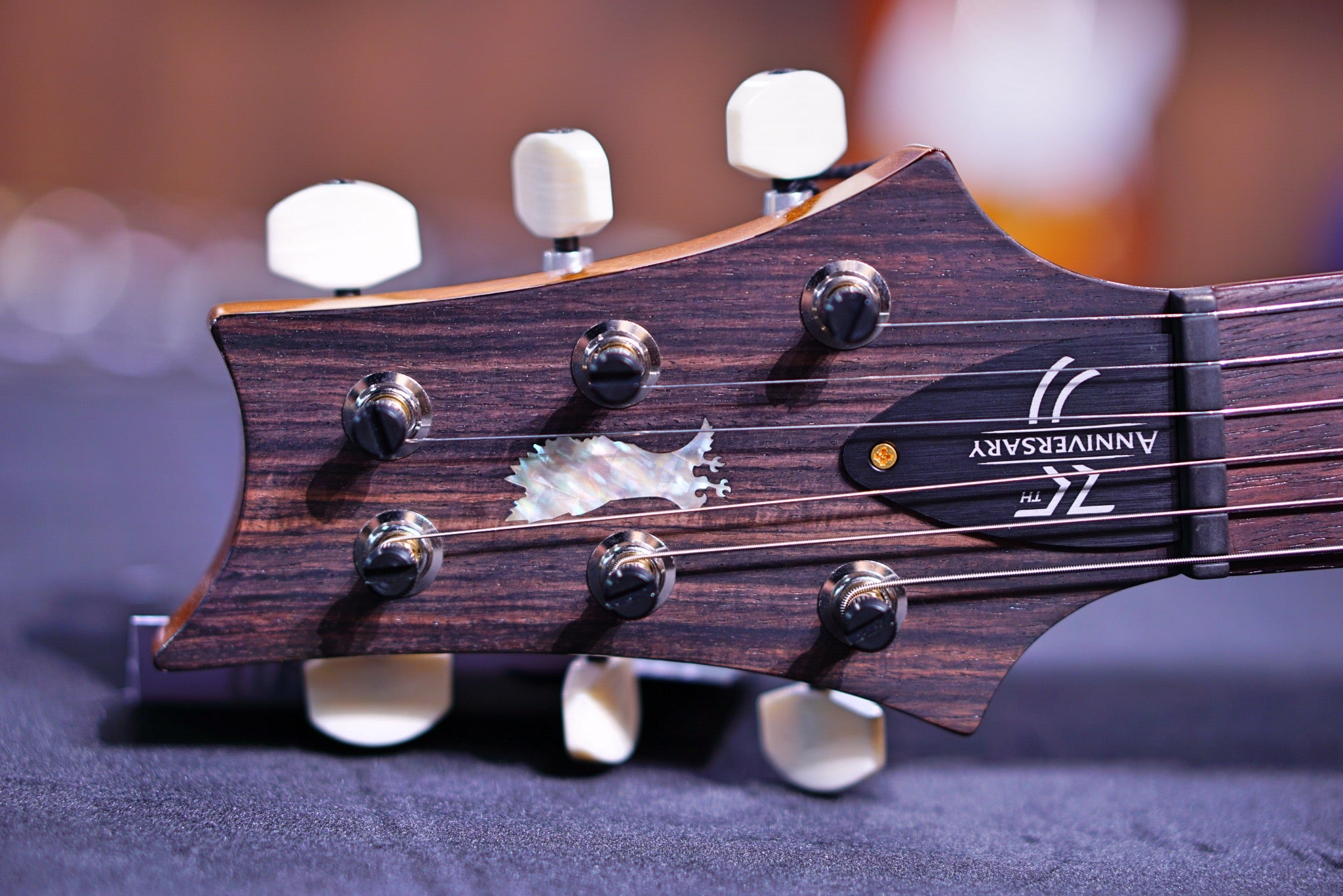 High-gloss nitro over a cellulose CAB basecoat gives the 35th Anniversary Custom 24 a finish that’s thin, durable, and crystal clear — the perfect formula for vintage feel and superior resonance. If this recipe sounds familiar, it’s what PRS has been using on its Private Stock models for years.