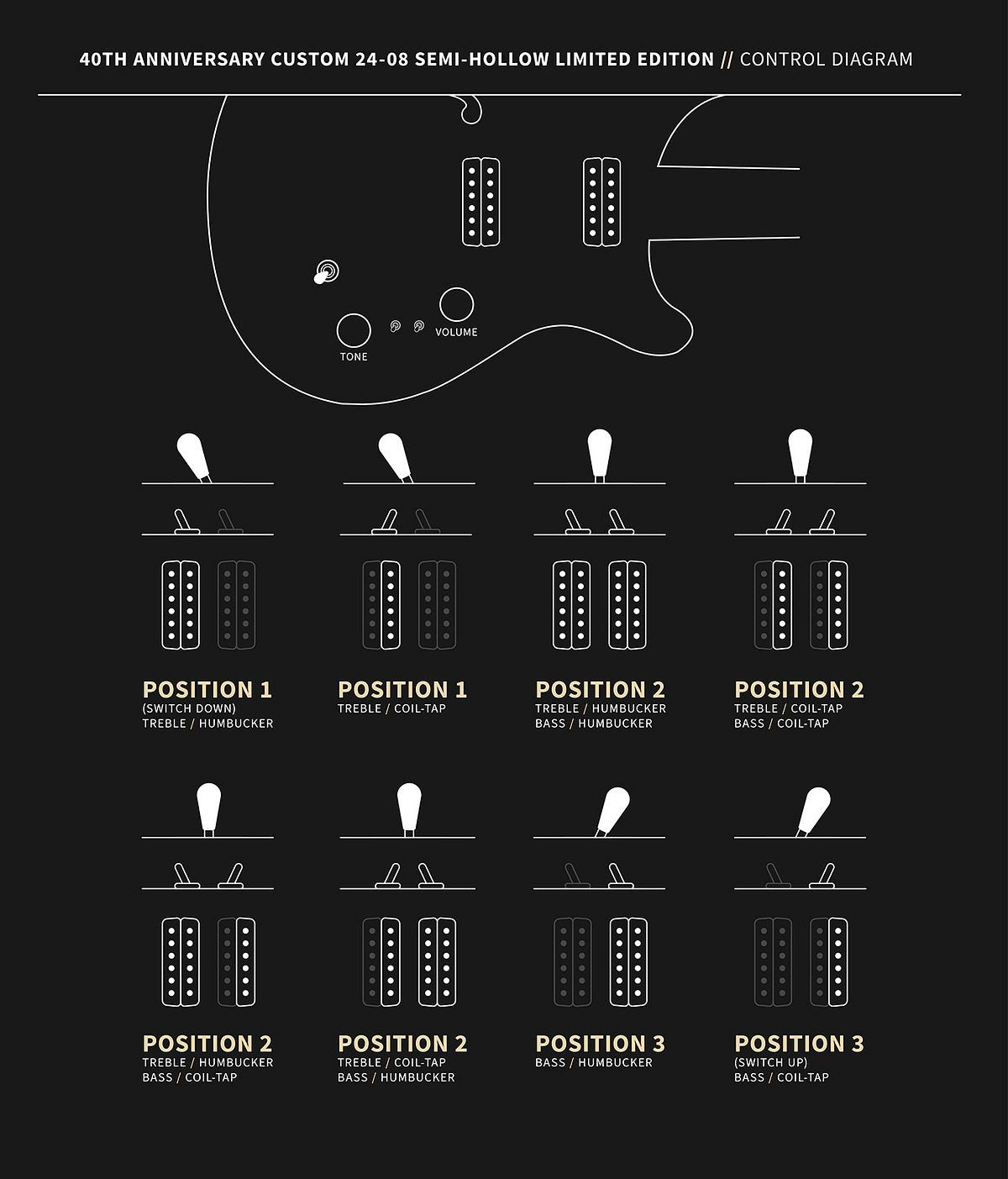 Limited to 300 pieces worldwide, this special edition features both traditional design features and new appointments, making it an essential piece for serious musicians and collectors alike. Only 300 of this 40th Anniversary Custom 24-08 Semi-Hollow Limited Edition will be available. Hand-signed 40th Anniversary certificate included.