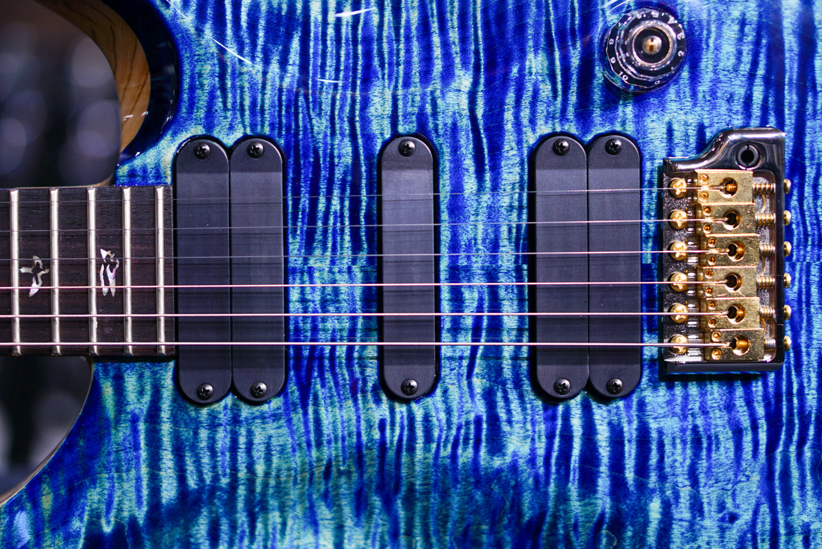 As one of the most versatile guitars in the PRS lineup, the 509 harnesses the power of 5 pickups to deliver 9 uniquely musical tones. The 509 starts with a 5 single coil platform - with the outside four coils grouped as humbuckers. An innovative switching system (a 5-way blade switch and two mini toggle coil-tap switches), gives players an array of humbucking, singlecoil, and blended tones.