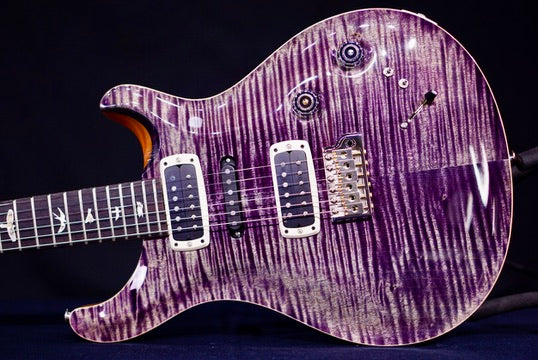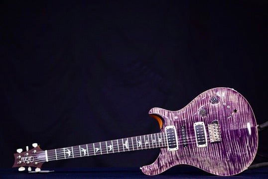 Additional appointments include a maple top and mahogany back, a 22 fret, 25” scale length, Pattern mahogany neck with rosewood fretboard, bone nut, and PRS patented Gen III tremolo.
