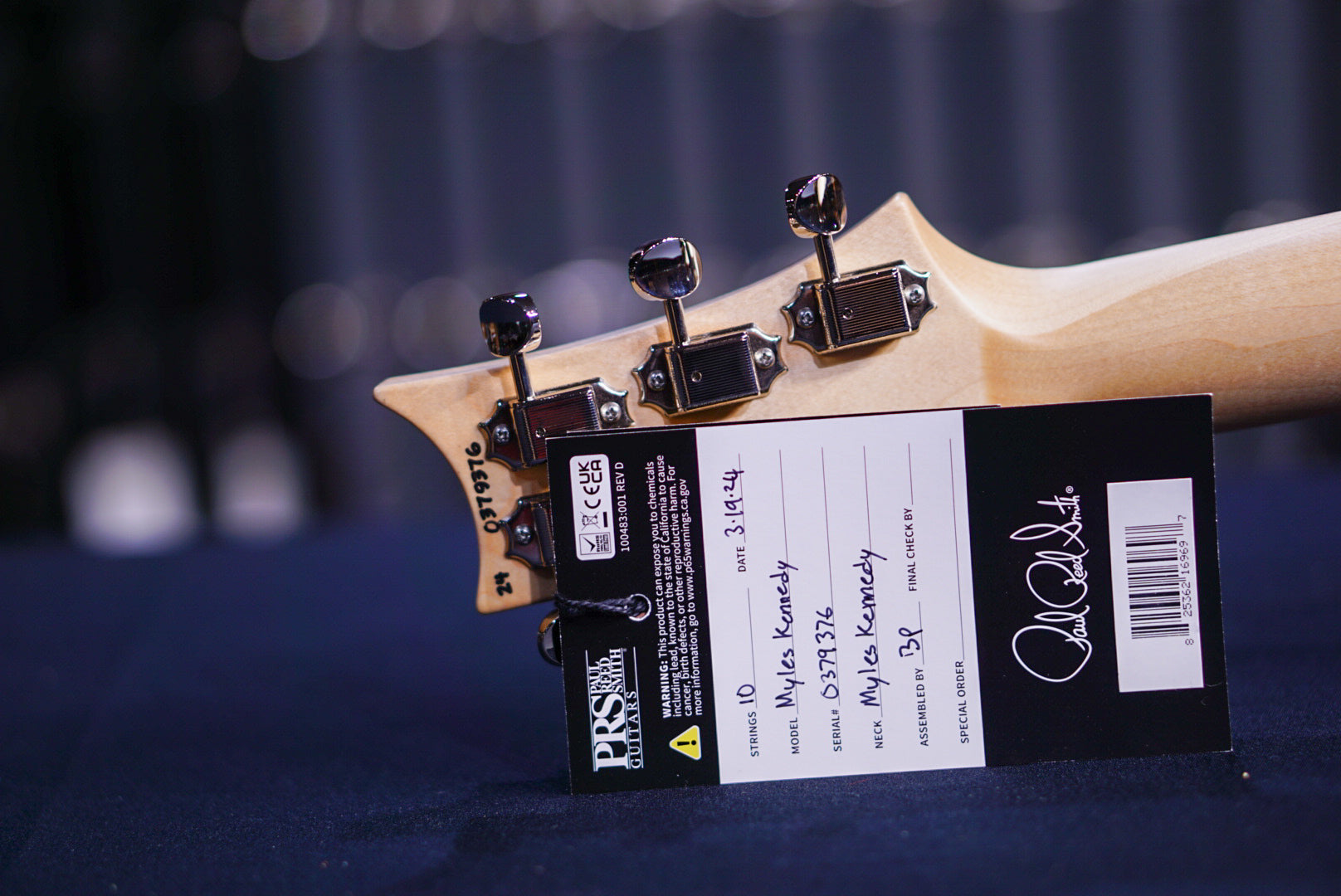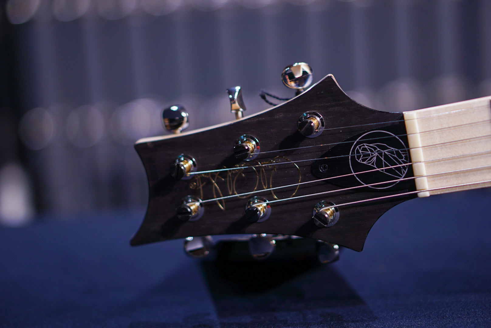 Other features include a PRS plate-style steel bridge, vintage-style locking tuners, bone nut, and Kennedy’s “Geometric Owl” logo from his “Ides of March” solo release, representing wisdom and adaptability.