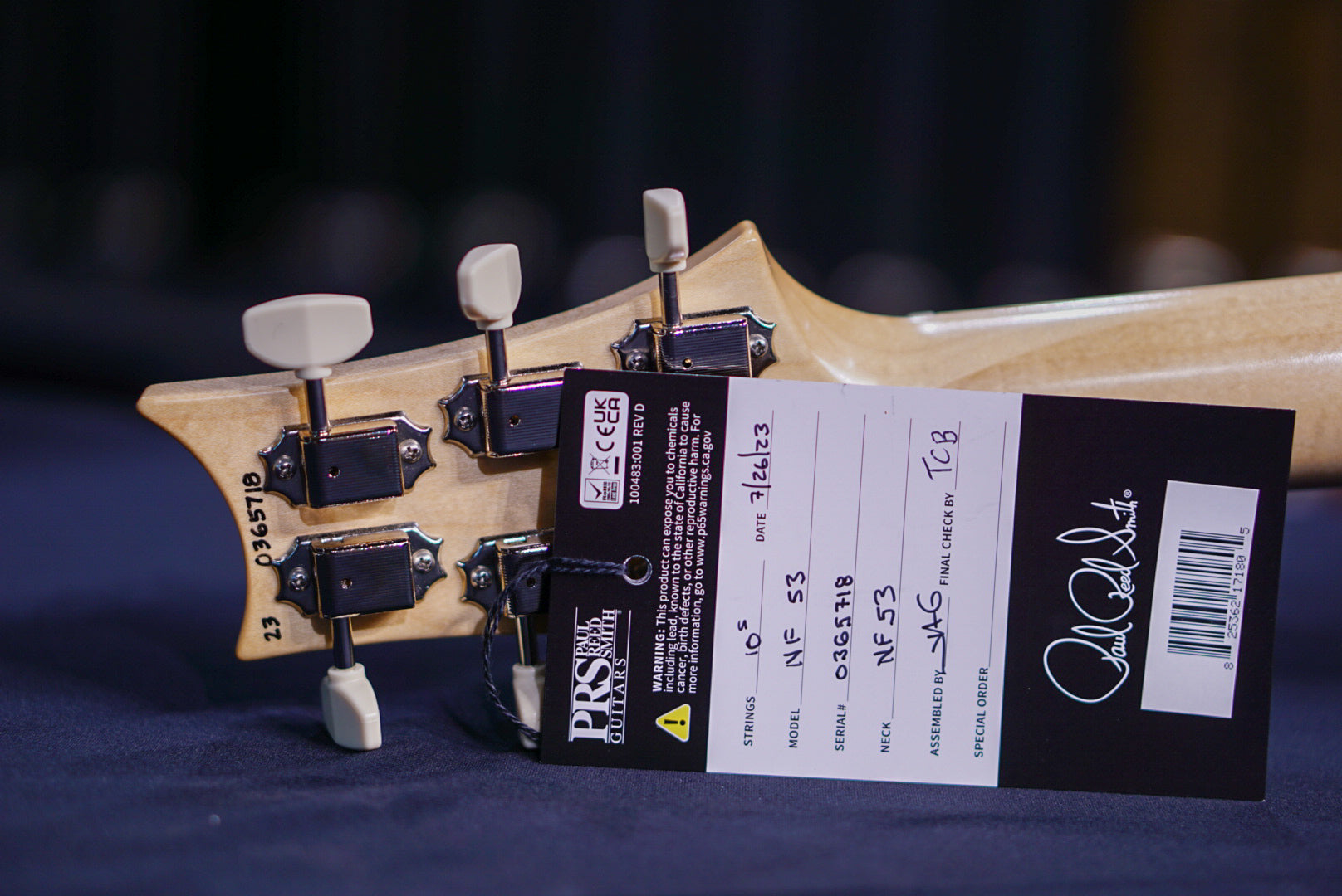 Paired with a volume and tone control and 3-way blade pickup switch, the NF 53 allows players to easily dial in their sound. The steel plate-style bridge, PRS vintage style tuners, and nickel hardware all work together to provide precise and reliable tuning stability while promoting sustain and powerful tone.