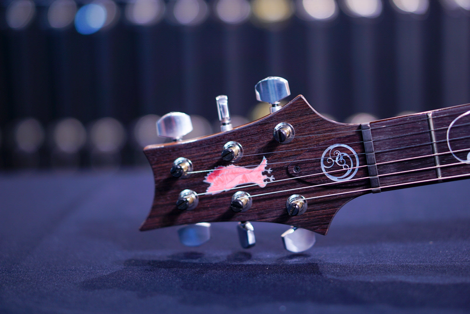 The Private Stock Orianthi Limited Edition keeps many of the specs as that original artist build, including a figured maple top, mahogany back, and a 24-fret, 25” scale length, Pattern Thin mahogany neck with rosewood fretboard. Like the original, the fretboard is adorned with a custom “Lotus Vine” inlay (similar to PRS’s classic “Tree of Life” design) that was inspired by a pen Orianthi sent to the team. The inlay is made from Asian Pink Coral and mother of pearl. Newly developed to showcase the Private Stock grade figured maple, the Private Stock Orianthi Limited Edition comes in Blooming Lotus Glow, which has a pink center glow that fades outward to a similar purple as the original artist build, which was opaque rather than hand stained.