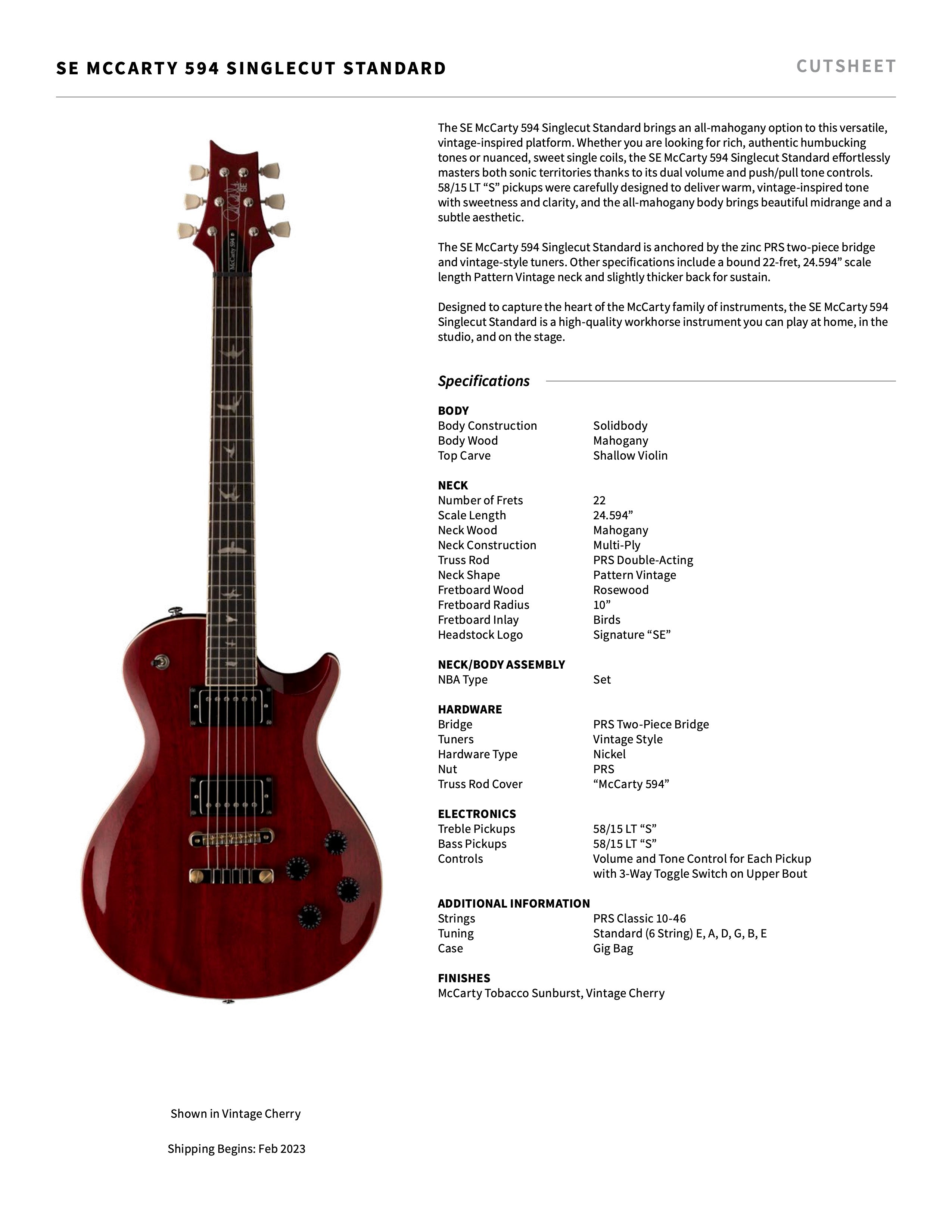 Designed to capture the heart of the McCarty family of instruments, the SE McCarty 594 Singlecut Standard is a high-quality workhorse instrument you can play at home, in the studio, and on the stage.