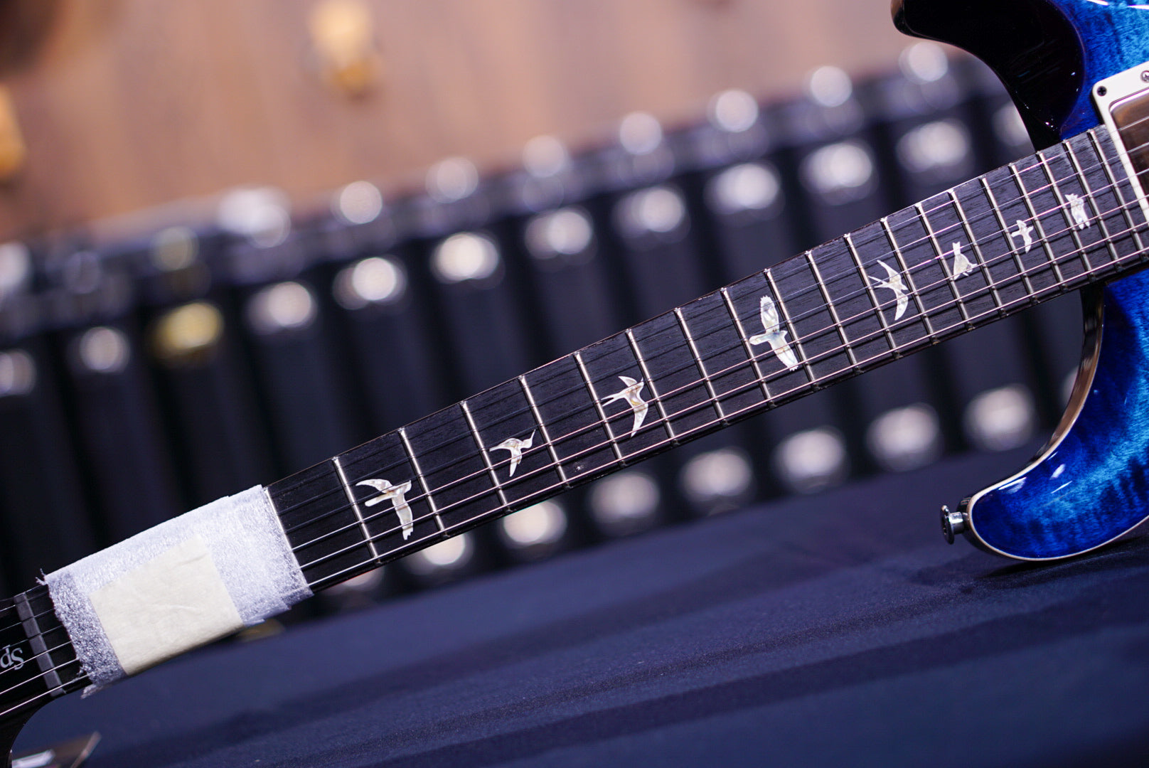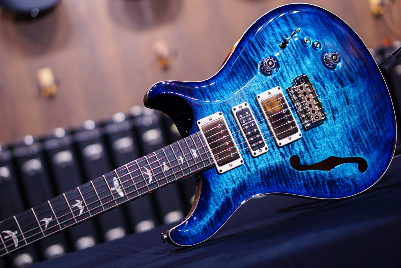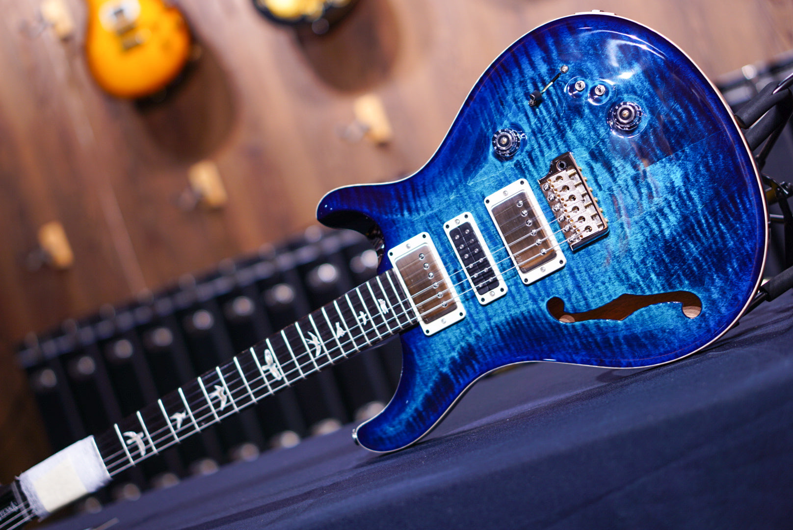Additional specifications include a maple top, mahogany back, 22-fret 25” scale length mahogany neck, rosewood fretboard, Phase III locking tuners, and the PRS Gen III patented tremolo system. The volume levels between the humbucking and single-coil settings remain very even, and the semi-hollow body with single f-hole provides a welcome airiness and depth to the guitar’s tone.