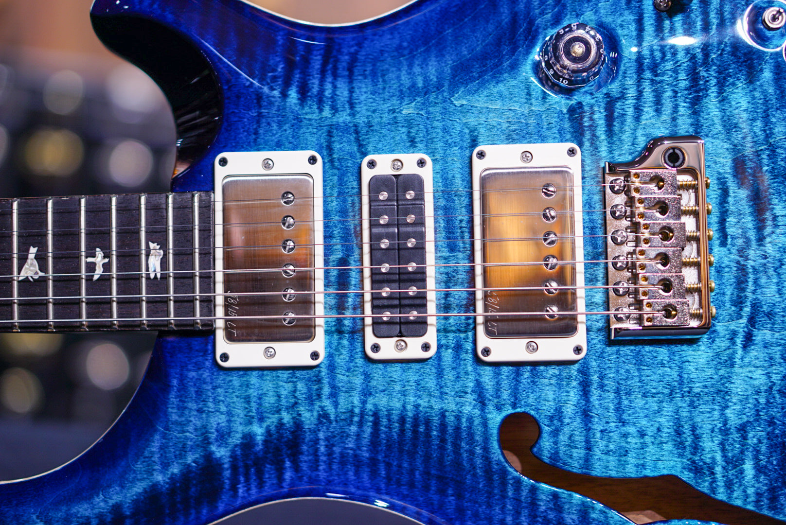 The PRS Special Semi-Hollow offers players a versatile hum/“single”/hum configuration with two PRS 58/15 LT humbuckers and a PRS Narrowfield middle pickup. PRS Narrowfield pickups deliver the bite of a single coil, so they cut through the mix with plenty of clarity and punch – without the hum. Paired with a 5-way blade switch and two mini-toggles that split the 58/15 LT humbuckers, this guitar can handle myriad sounds and styles (with twelve pickup combinations in total). Roll back the tone control for added growl, turn it up for some shimmer, and have fun exploring this versatile tonal palette.