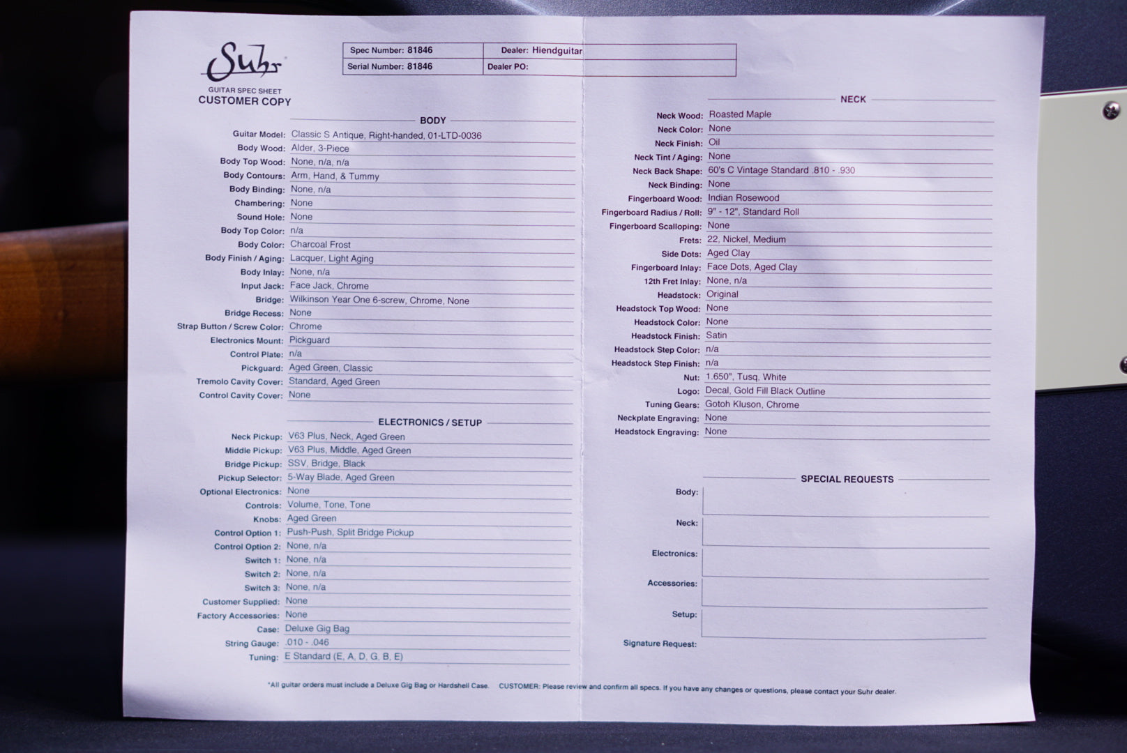 Suhr classic s vintage Limited Edition charcoal frost 81846
