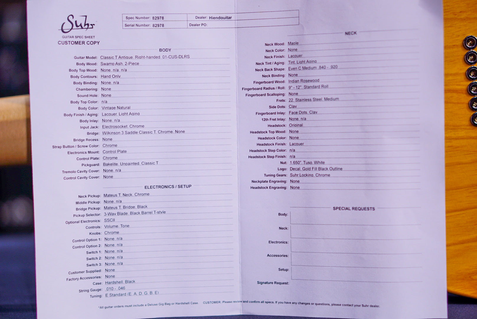 Suhr Classic T Custom Antique Vintage Natural 82978